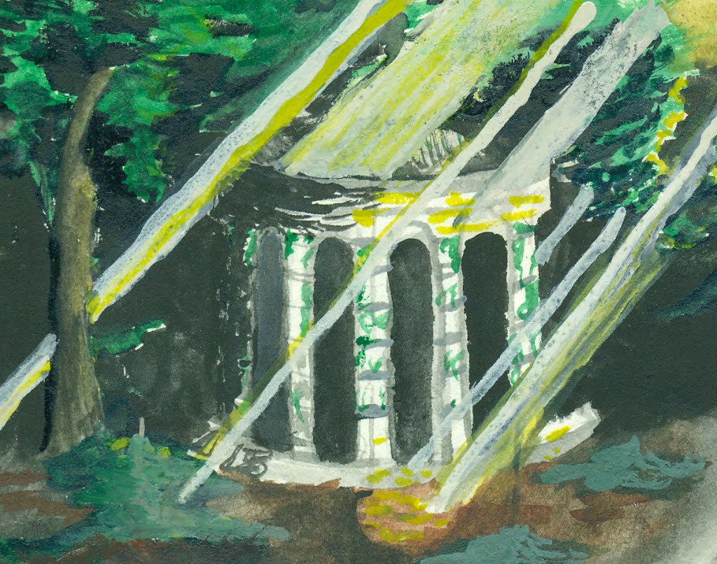 By some misguided erudition, he came to an abandon tomb. At its entrance he paused to smell the sodden air; a hesitation that seemed to vex his helpful will-‘o-the-wisps. They buzzed into the sepulchral space and took point, leading him, and revealing a vaulted chamber. Discarded burial urns and decomposed clothes littered the floor. And then at the back there was the double-sarcophagi of a knight and a maiden. Cadmus moved forward and read the inscriptions on the wall. “Tristan and Isolde, lovers unto death.”