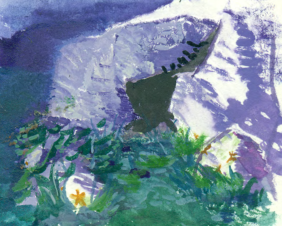 From bipedal feet he bent down on all fours. His palms turned to pads and nails into claws. He was now a nimble gray wolf and bound through the underbrush with a furry of strides. Up the sloop toward the mountain he ran. The trees thinned to ferns and the ferns to grass. He had reached the highlands. It was night again but there were no stars in the west. Though his eyes could not see in definition, his wet nose sensed a thunderstorm. The upper reaches would be impassable.